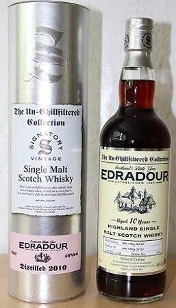 Ce whisky single malt a été distillé en 2010 à la distillerie Edradour avant d’être placé dans un ex Sherry Butt et laissé à maturité pendant 10 ans. En 2021, il a été mis en bouteille à 46 % abv dans le cadre de la collection Signatory Vintage Un-Chillfiltered.